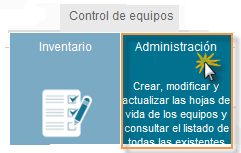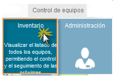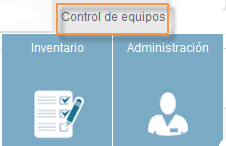 Al seleccionar el módulo de control de equipos se despliegan las secciones de; (Inventario y Administración).