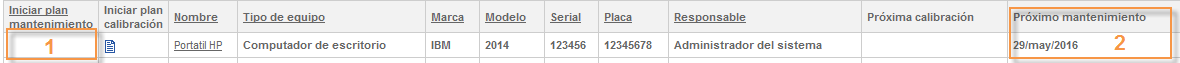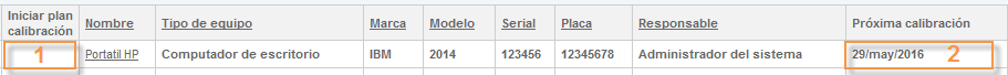 Próximo mantenimiento:Es un campo automático, en el cual se mostrara la información correspondiente una vez se defina la primera fecha en Inicio plan de calibración.