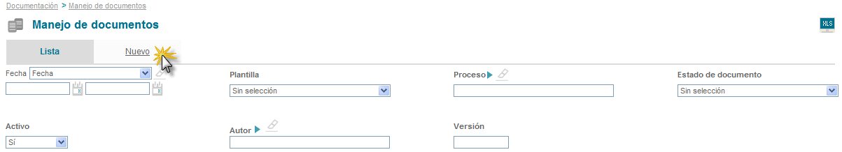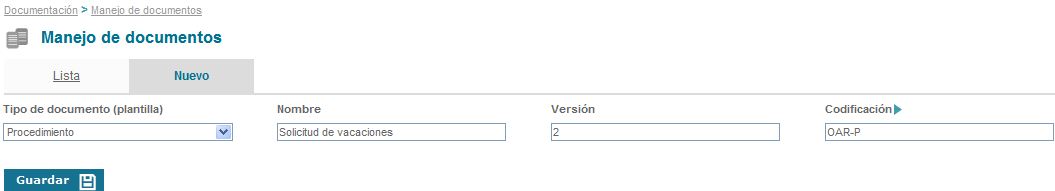 Para crear un nuevo documento se debe dar clic en la opción de “Nuevo” de la opción manejo de documentos.
