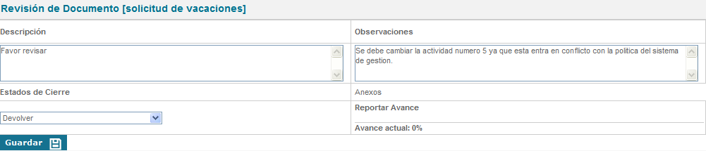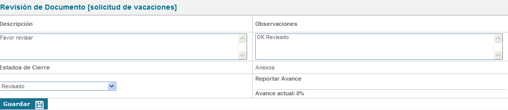 Revisión: Documentos que se encuentran en proceso de revisión y aprobación (tareas de flujo abiertas), un documento en este estado no estará público para los usuarios de consulta.