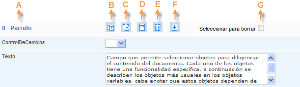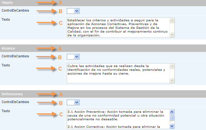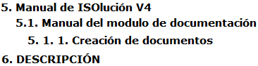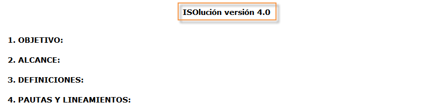 Una vez diligenciados los datos se debe dar clic en el botón . Luego ISOlución® mostrará una pantalla donde se visualizará la parte de edición de la plantilla que se ha seleccionado para poder elaborar el documento. Se debe tener en cuenta que la visualización y funcionalidad de las plantillas de documentos dependen de los requerimientos de cada empresa, a continuación se especifica la visualización y funcionalidad estándar, aplicable a todas las plantillas de ISOlución®.