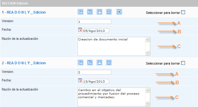 8. Versión: Campo numérico para filtrar el listado de documentos según la versión en la que se encuentran los documentos.