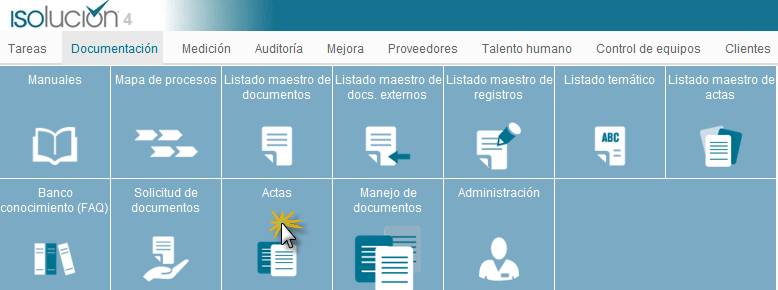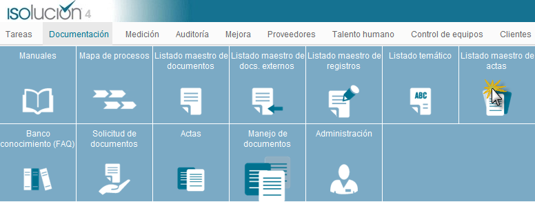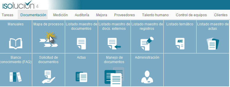 Este módulo permite administrar, publicar y controlar los documentos y registros, utilizando plantillas predeterminadas y dinámicas, para procedimientos, instructivos, manuales, mapas de procesos, actas y demás documentos que se generan al interior del Sistema de Gestión de la organización.