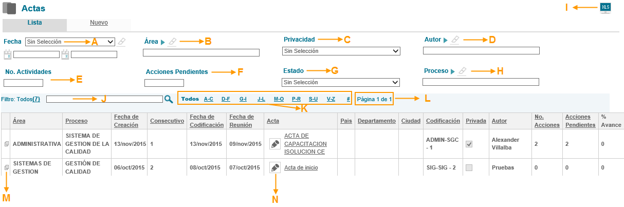 11. Filtro alfanumérico para búsqueda de actas.