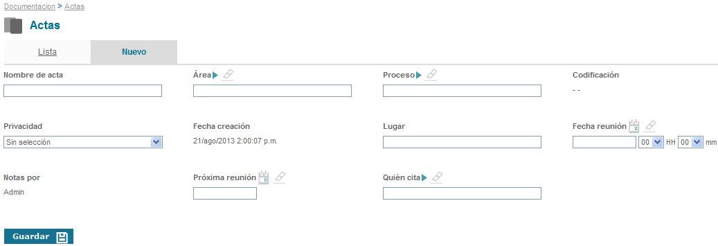 Allí se mostrará el formulario para la creación de la nueva acta.