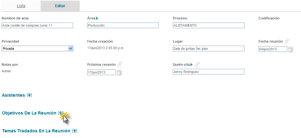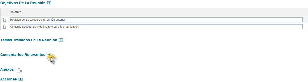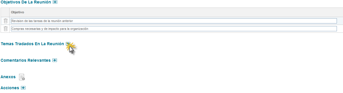 Figura 321: Sección objetivos de la reunión