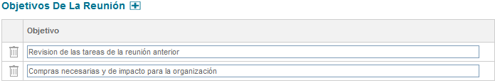 Sección Objetivos de la Reunión