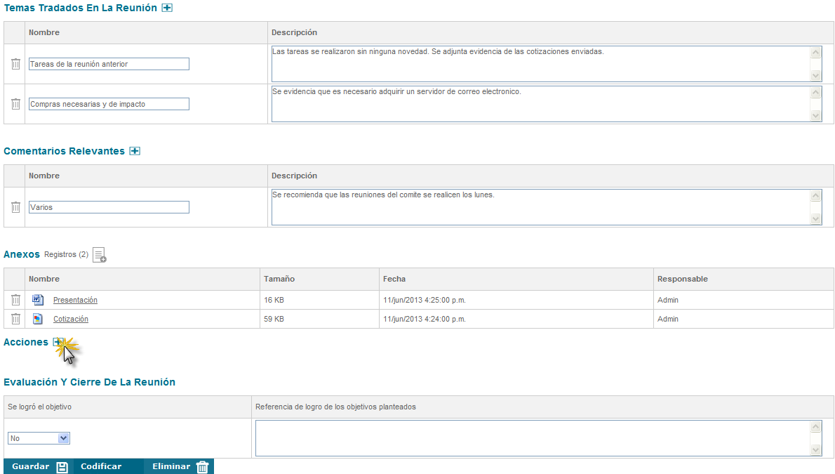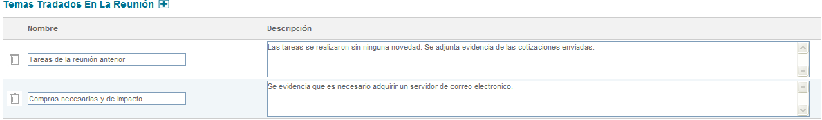 Figura 324: Sección temas tratados en la reunión