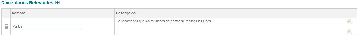 Sección Comentarios Relevantes