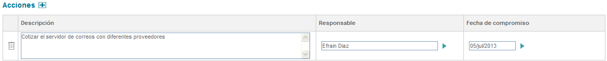 Dando clic en el botón el acción quedará cargado al acta.