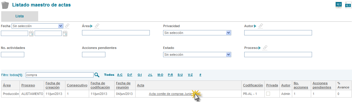 Para abrir un acta se debe dar clic sobre el nombre de esta.