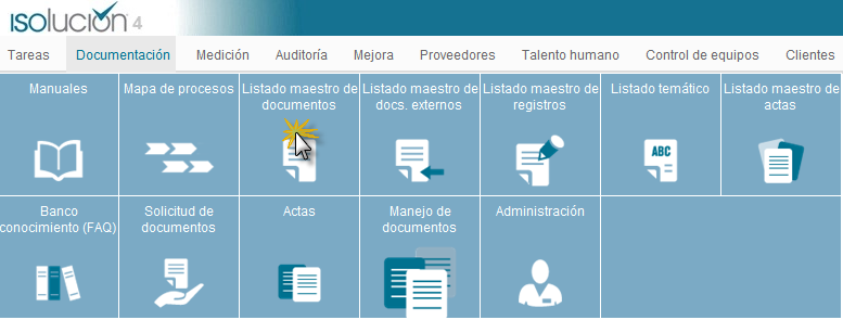 Opción que permite la creación, modificación, inactivación y eliminación de todos los documentos del sistema de gestión.