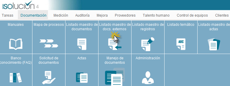 Esté menú del modulo de documentación permite administrar la gestión documental y alimentar información en los demás menús.