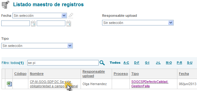 En este listado también se publicaran los anexos cargados desde la opción “Subir registro de calidad” y desde la plantilla “Registro”