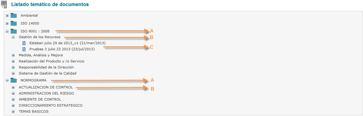 Este listado muestra los documentos que son emitidos por entidades externas, pero que hacen parte de la gestión de la organización. Ejemplo: Normas, decretos, leyes, circulares, resoluciones, etc.