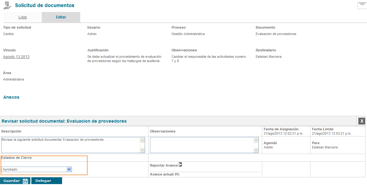 Figura 310: Tarea de solicitud de documentos