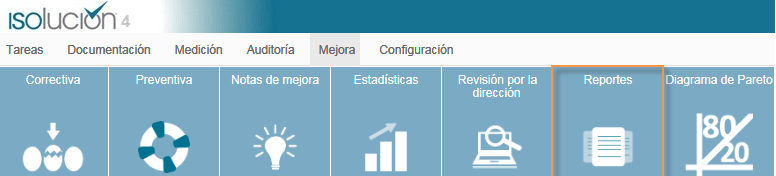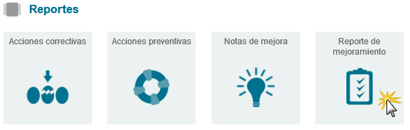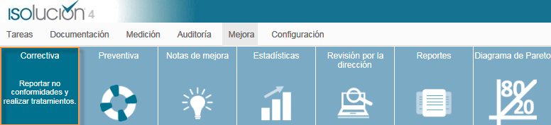 Este menú del módulo de mejora permite consultar las acciones de mejoramiento (correctivas, preventivas y de mejora) que se han generado en ISOlución®.