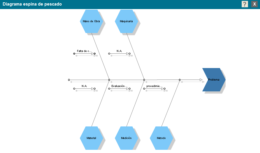 Titulo “Espina de Pescado” que contiene los campos para describir el problema y cada uno de los factores.