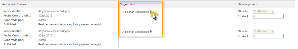 Cuando una actividad tenga los seguimientos necesarios, se podrá evaluar si la misma fue eficaz o no.