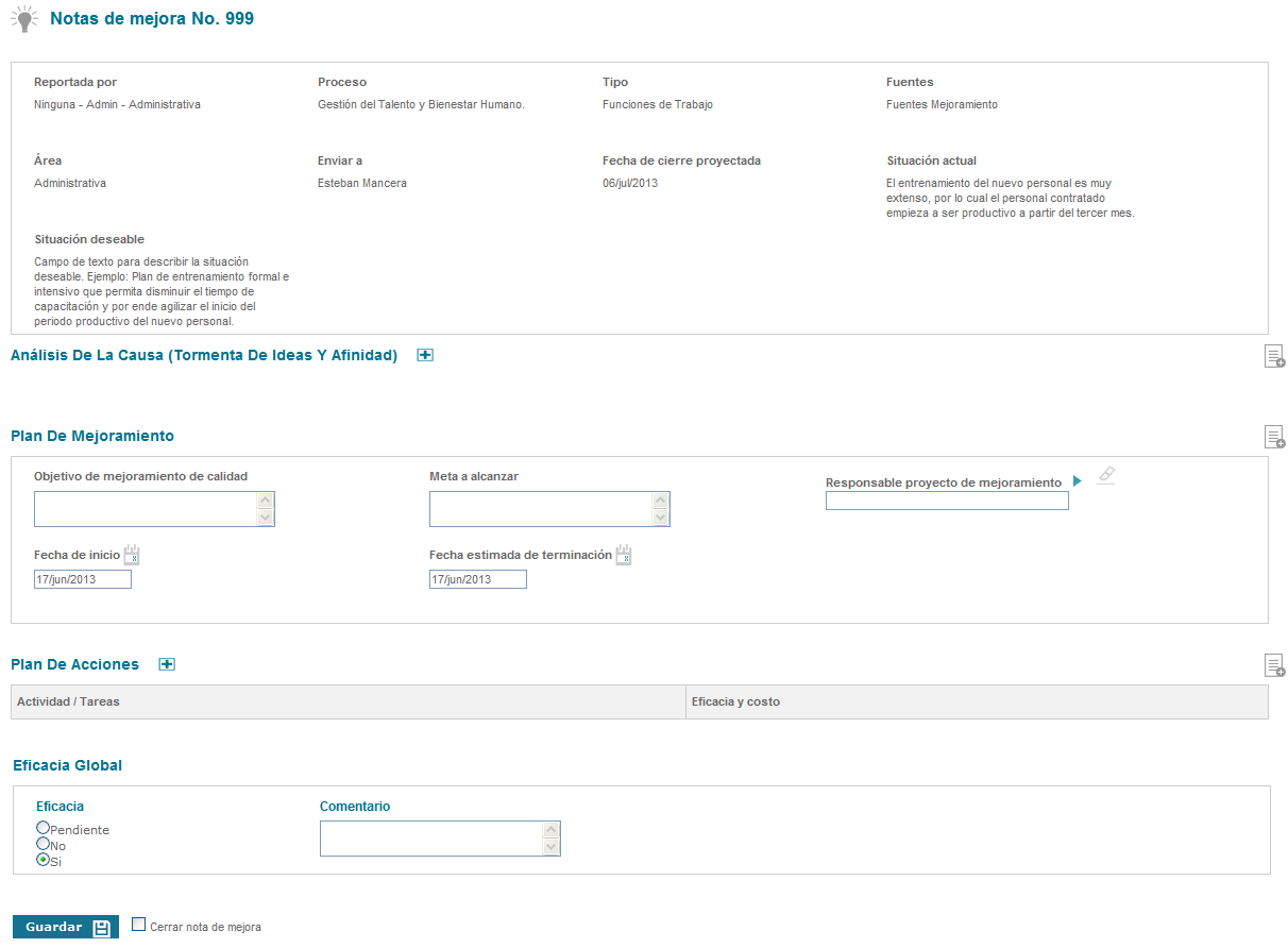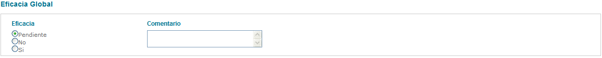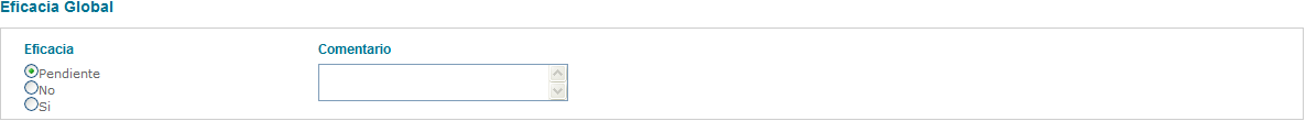 Eficacia: Lista desplegable con los valores “Si” y “No”. Para cerrar la actividad se debe seleccionar alguna de las dos opciones.