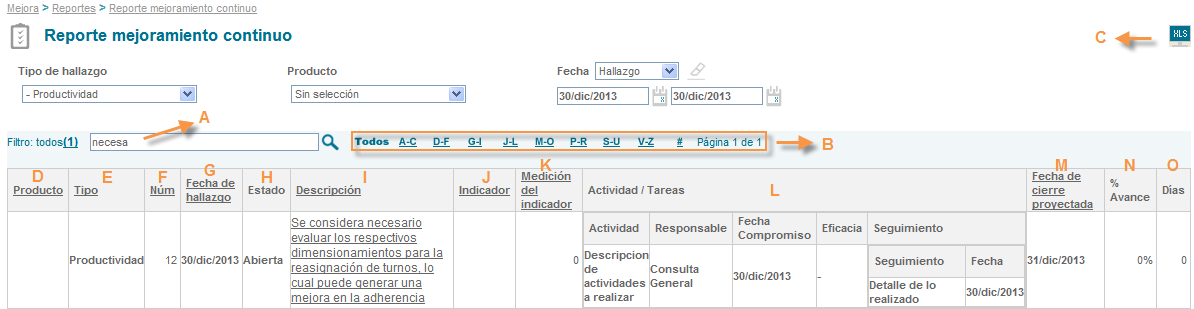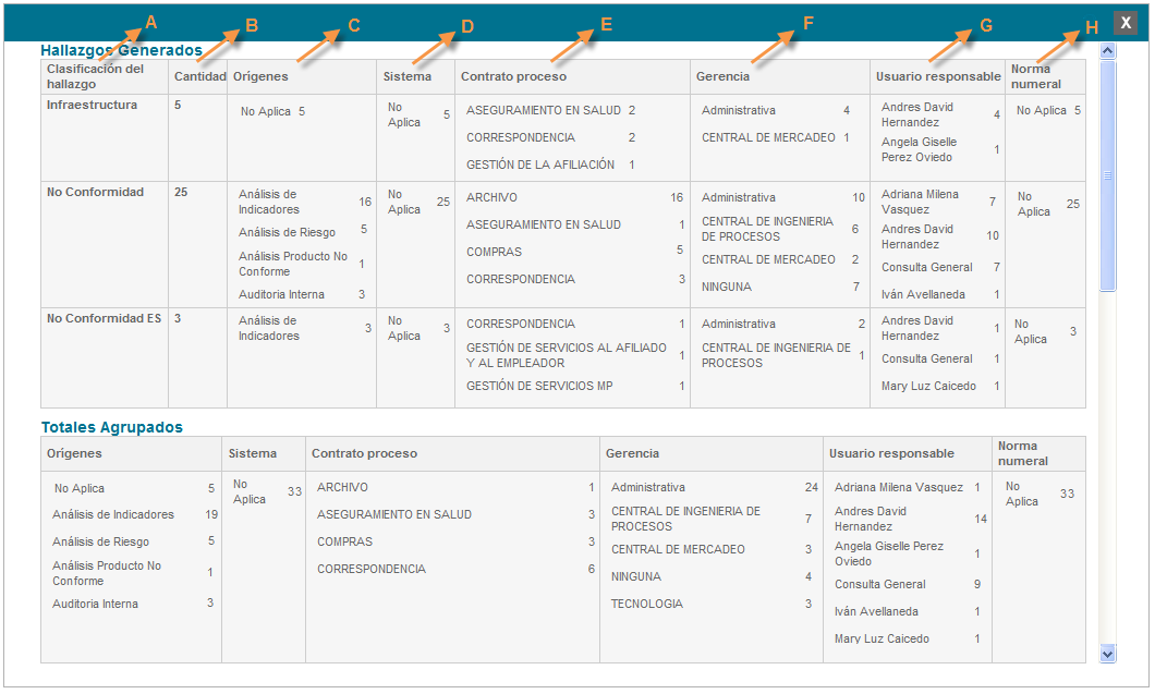 Esta opción consolidará todos los tipos de hallazgos (correctivos, preventivos, de mejora y provenientes de auditorías) en un solo reporte.