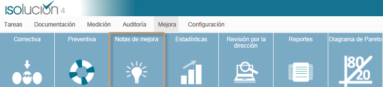 La opción de notas de mejora muestra el listado de las acciones creadas desde la opción notas de mejora del módulo de mejora.