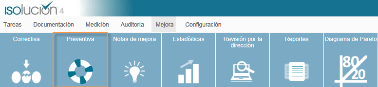 La opción de acciones preventivas muestra el listado de las acciones creadas desde la opción preventiva del módulo de mejora.