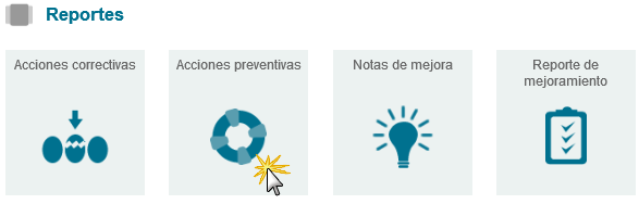 Acciones Preventivas: Dentro de esta sección se reportan situaciones que pueden convertirse en no conformidades si no se tratan a tiempo. Al igual que en Acciones Correctivas, se asignan acciones encaminadas a eliminar las posibles causas del suceso.
