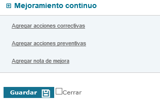Al dar clic en guardar permitirá generar acciones correctivas, preventivas y de mejora, el cual llevará automáticamente al módulo de mejoramiento.