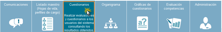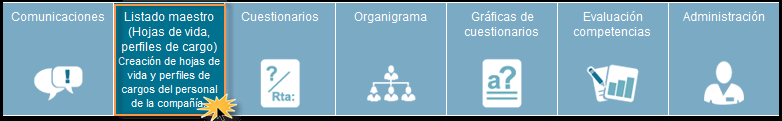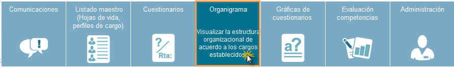 Este módulo permite crear perfiles de cargo, hojas de vida, evaluaciones o cuestionarios y visualización de resultados, publicaciones y organigrama; y por otro lado, administrar las competencias y capacitaciones.