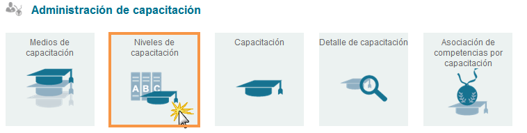 Está opción permite adicionar, modificar o eliminar los niveles que están asociados a las capacitaciones por ejemplo; Avanzado, Básico, General, etc.